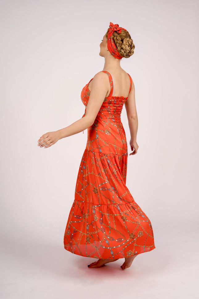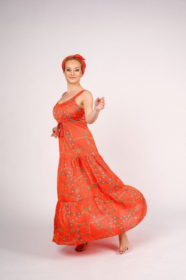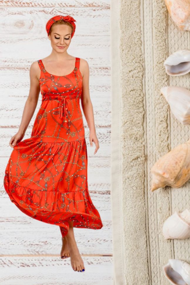 Рокля, която съчетава чувство за лукс -материята е сатинирана вискоза , винаги актуален принт и чувство за свобода - ефирна лятна кройка с презрамки . С тази рокля сте перфектно облечена в ежедневието и сте звездата на бийч бара.