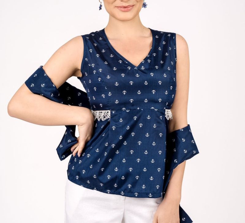 Перфектно ушит потник с цип отзад . Презрамките са достатъчно широки, за да се носи и като лятна блуза... Комбинирайте със сако Saint Tropez и се наслаждавайте на перфектен лукс с прочутия маритимен принт.