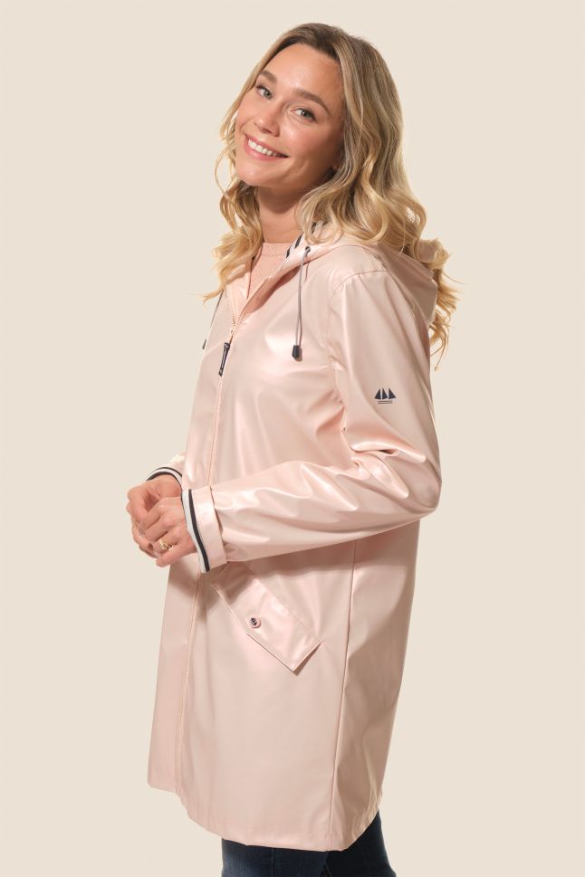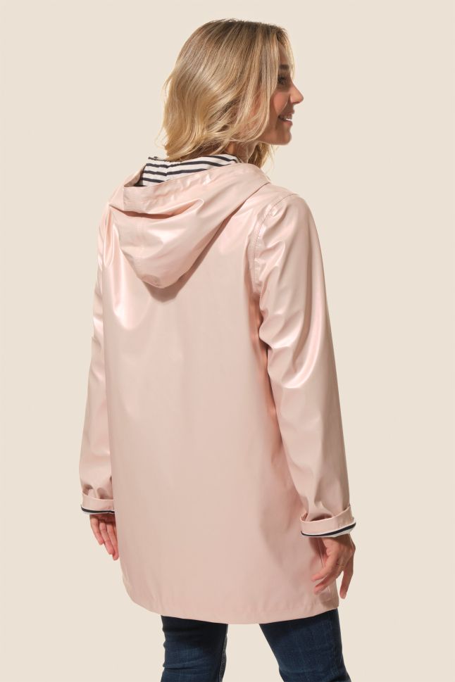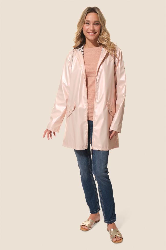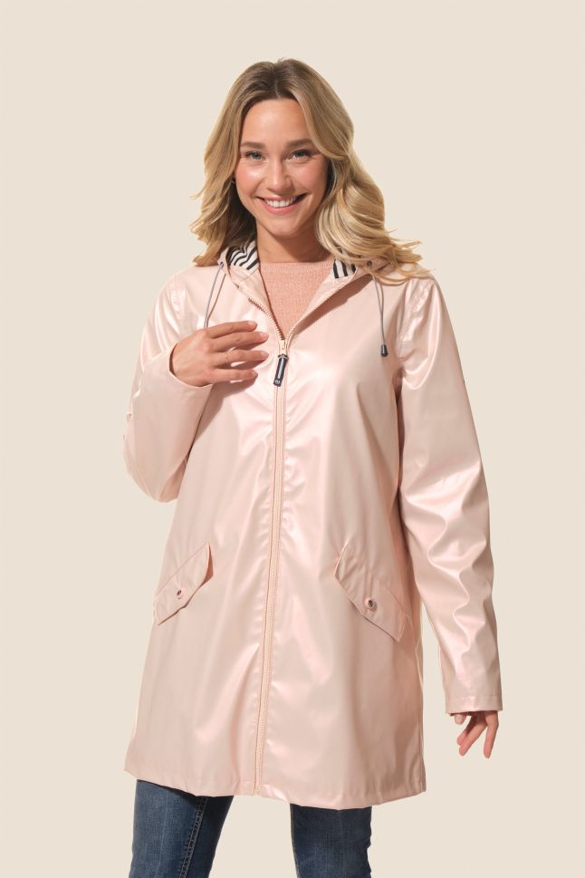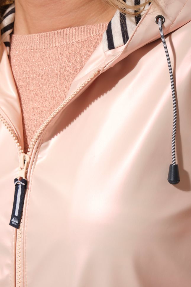 Комфорт, защита и оригиналност: това холографско непромокаемо яке със средна дължина впечатлява с разкроената си кройка, смесената подплата и практичната си качулка, за да останете шик дори в дъжда.