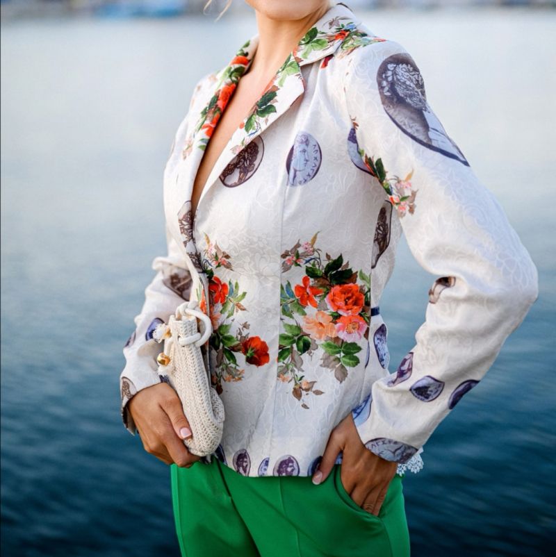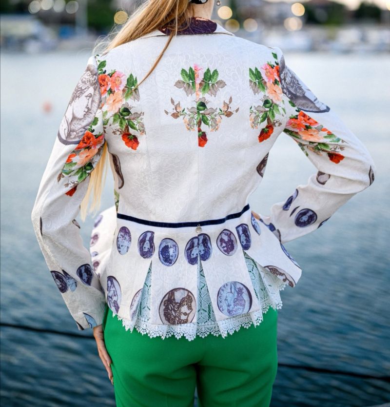 Носили ли сте сако по - удобно от тениска? Това е вашето сако! Без подплата, памук гали тялото и необичаен принт . С това сако сте център на внимание и въображение.