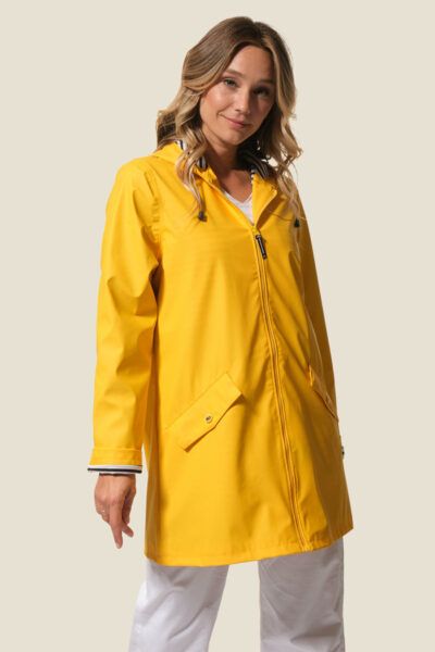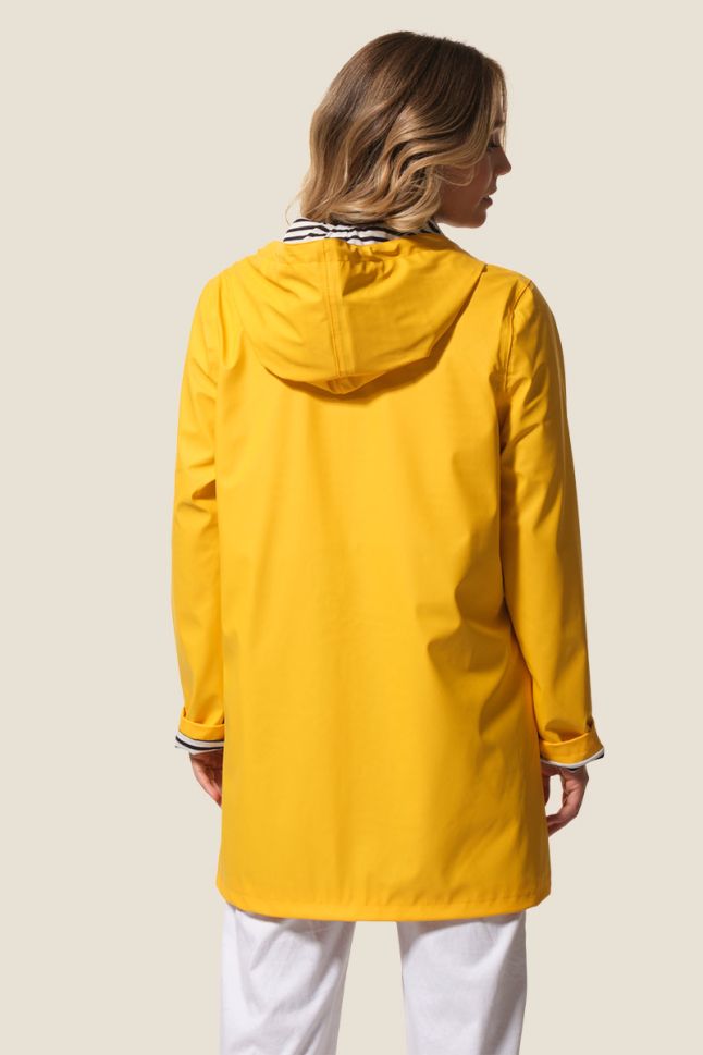 Леко, женствено и непромокаемо, яке Lola се отличава с ласкателна разкроена кройка, удобна смесена подплата и регулируема раирана качулка. Незаменим елемент, за да останете стилни в дъжда.
