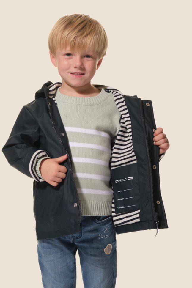 - Един вътрешен джоб Маншети от раиран трикотаж