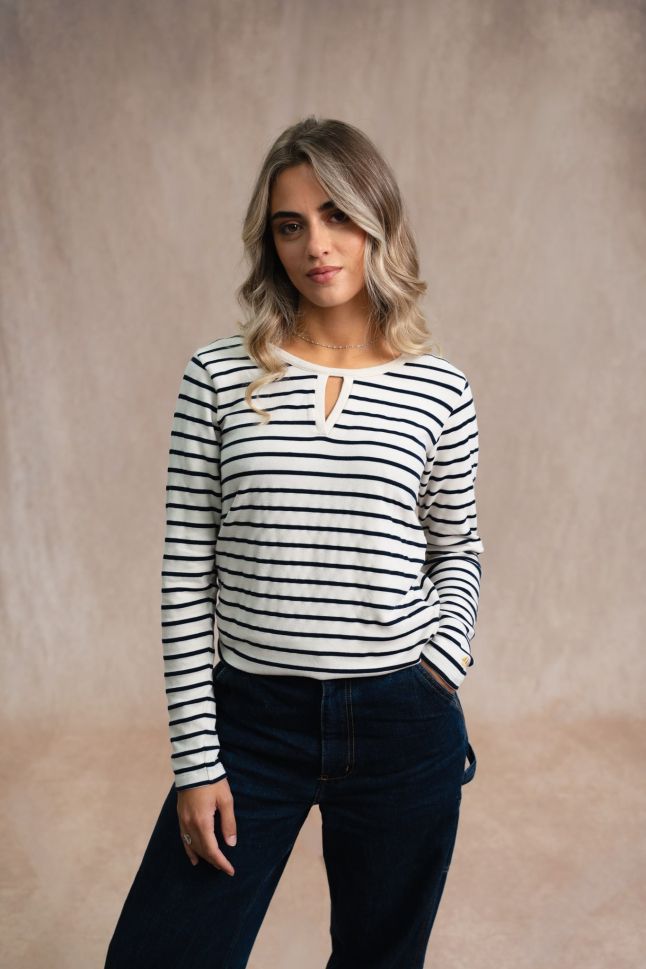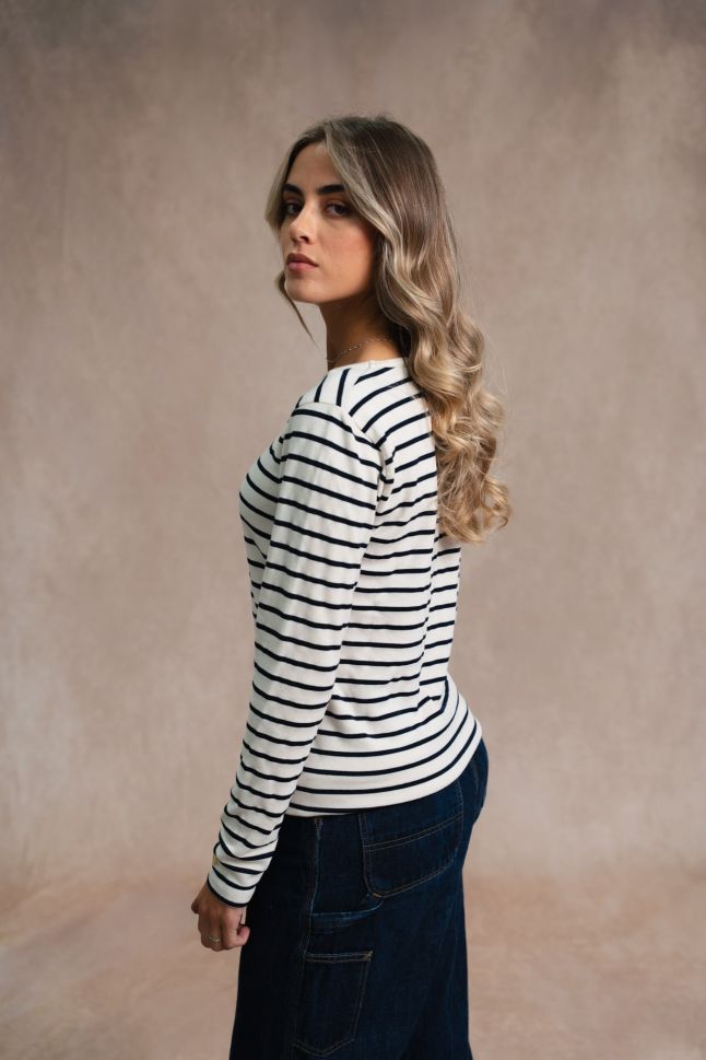 Начало Дрехи за жени Дамска раирана тениска с дълъг ръкав
